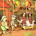 espielt wird in einem postgelb gestrichenen Paketauto, das voller Überraschungen steckt. Da wird der Laderaum mal zum Wohnzimmer und mal zum kleinen Dorf, die Fahrerkabine zum perfekten Ort für ein spannendes Schattenspiel und ein großes Paket auf der hinteren Ladefläche entpuppt sich als Miniaturbühne, auf der Roswithas Bauernhof zum Leben erweckt wird. Angereichert mit ein paar Musikeinlagen, wird daraus ein äußerst vergnügliches, witziges und turbulentes Stück, daß das Publikum in große Begeisterung versetzte.